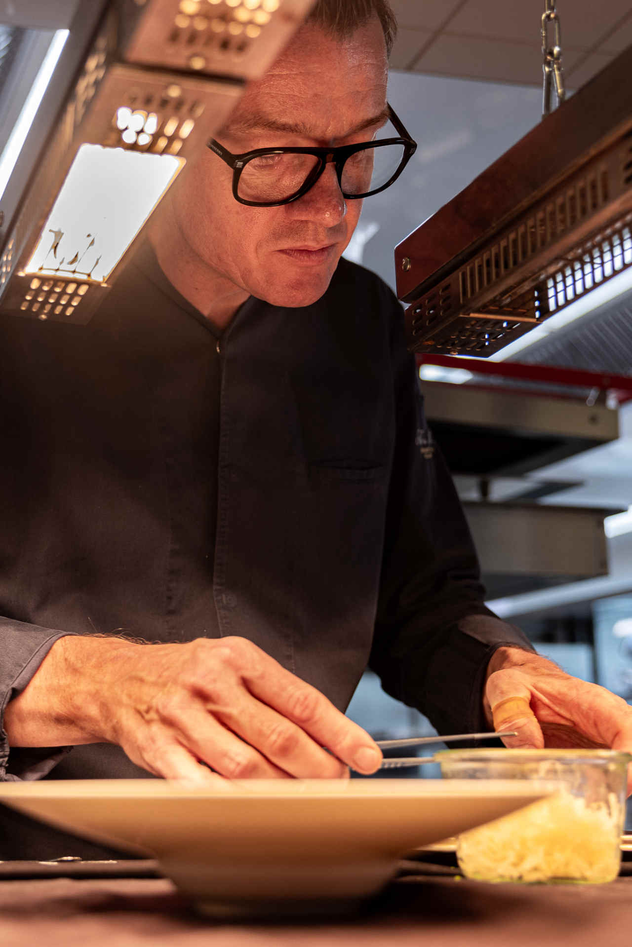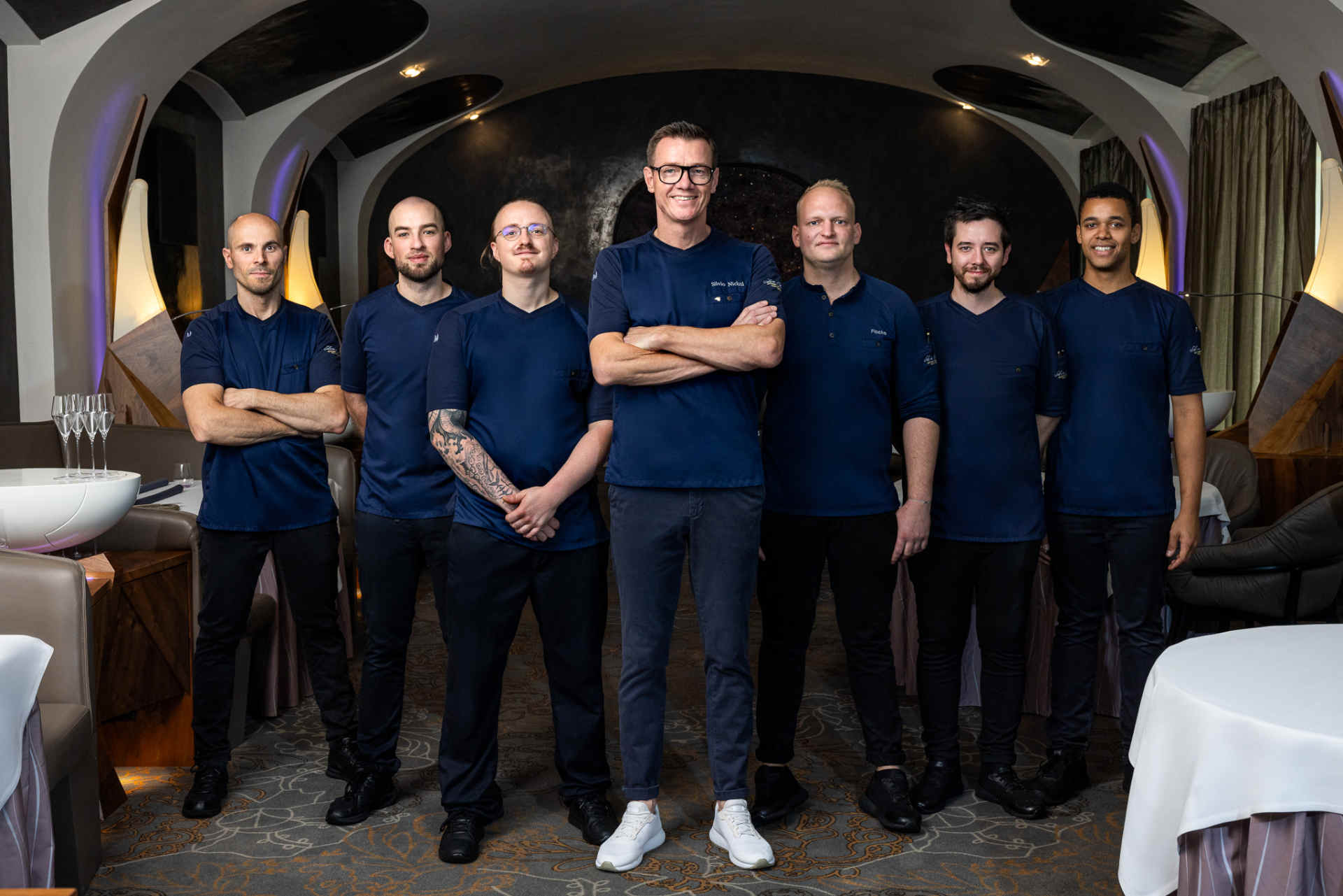 The idea always starts with the product. First, we look at what is available seasonally, which producers can deliver the desired quality and in what quantity – after all, a dish usually stays on the menu for two to three months. Together with my head chef and my team, we then put the dish together in our minds. We have so many flavors stored in our memory that we usually already know how it will taste—and in the end, we “just” have to cook it.
