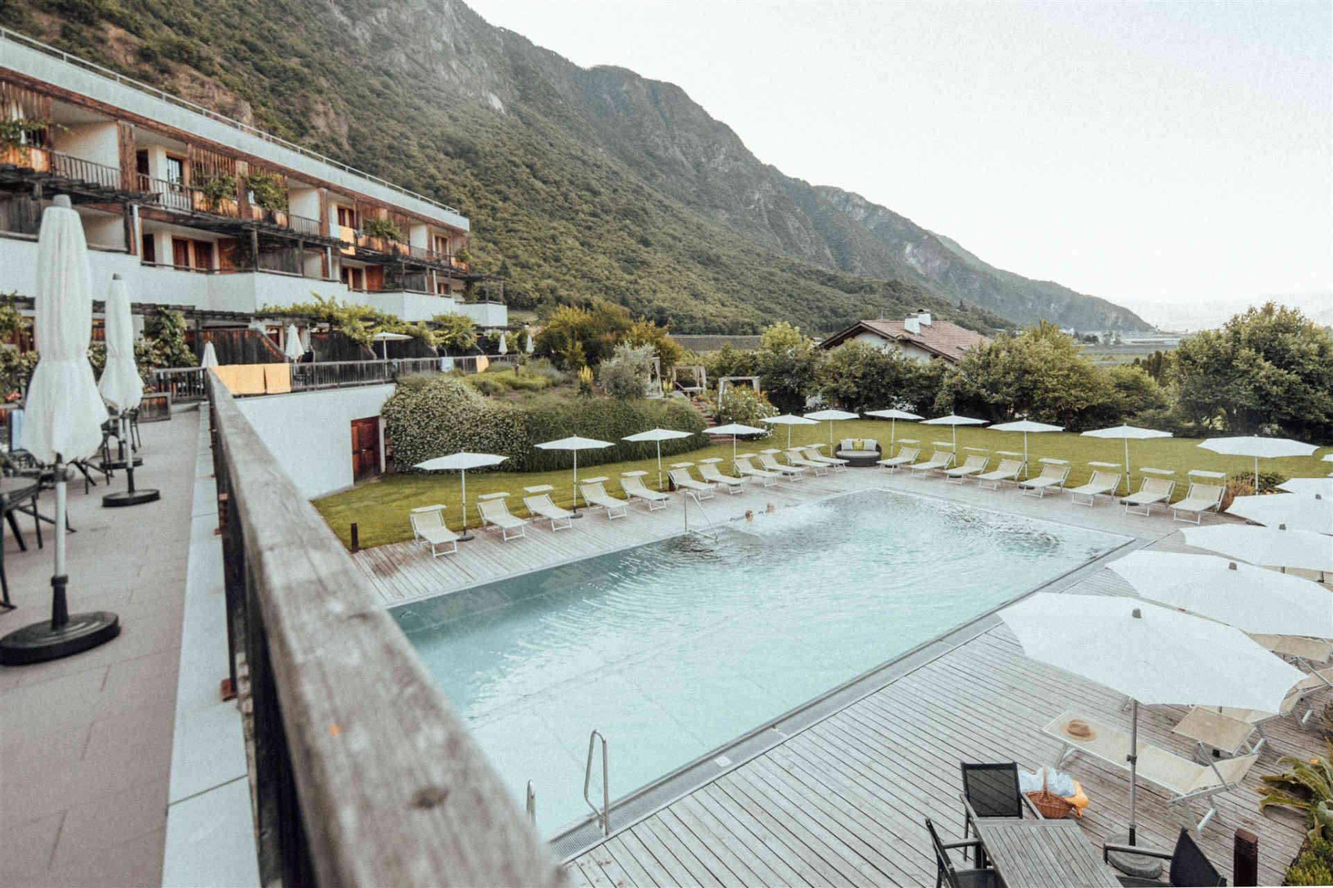 Italy's first Demeter-recommended organic vitality hotel is located in Gargazon near Merano. The family-run hotel stands for sustainable comfort, ecological architecture, and cuisine that is 100% organic – from its own Demeter farm to its detox menu. With a carbon footprint of only 5 kg per guest per night, it is considered the most climate-friendly hotel in the Alpine region. Guests who vacation here experience what holistic sustainability tastes like – honest, mindful, and down-to-earth.
